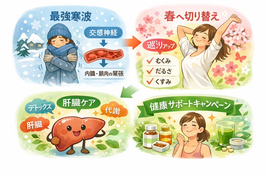 寒さが続くと、体はバランスを保とうとして常に緊張しやすくなり、内臓や筋肉もこわばりやすい状態が続きます。